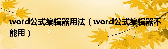 关于word公式编辑器用法,word公式编辑器不能用这个很多人还不知道,今天菲菲来为大家解答以上的问题,现在让我们一起来看看吧!