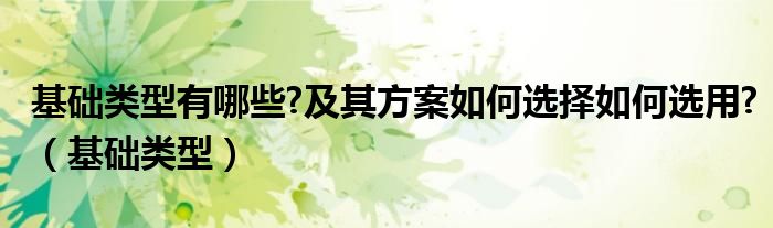 关于基础类型有哪些?及其方案如何选择如何选用?,基础类型这个很多人还不知道,今天菲菲来为大家解答以上的问题,现在让我们一起来看看吧!