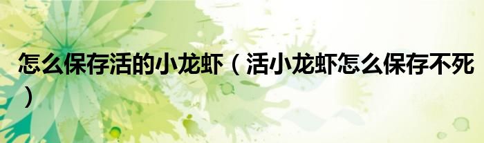 大家好,小晋来为大家解答以下问题,关于怎么保存活的小龙虾,活小龙虾怎么保存不死很多人还不知道,今天让我们一起来看看吧!
