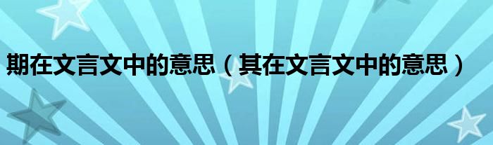 关于期在文言文中的意思,其在文言文中的意思这个很多人还不知道,今天菲菲来为大家解答以上的问题,现在让我们一起来看看吧!