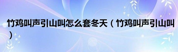 大家好,小晋来为大家解答以下问题,关于竹鸡叫声引山叫怎么套冬天,竹鸡叫声引山叫很多人还不知道,今天让我们一起来看看吧!