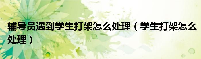 关于辅导员遇到学生打架怎么处理,学生打架怎么处理这个很多人还不知道,今天菲菲来为大家解答以上的问题,现在让我们一起来看看吧!