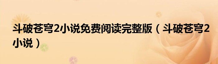 关于斗破苍穹2小说免费阅读完整版,斗破苍穹2小说这个很多人还不知道,今天菲菲来为大家解答以上的问题,现在让我们一起来看看吧!