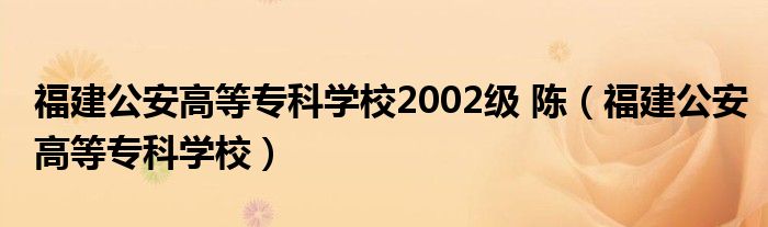 关于福建公安高等专科学校2002级 陈,福建公安高等专科学校这个很多人还不知道,今天菲菲来为大家解答以上的问题,现在让我们一起来看看吧!