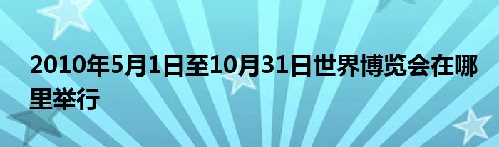 关于2010年5月1日至10月31日世界博览会在哪里举行这个很多人还不知道,今天菲菲来为大家解答以上的问题,现在让我们一起来看看吧!