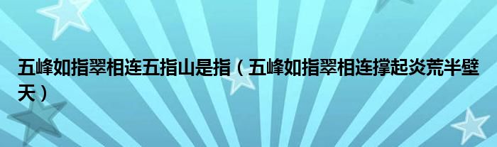 关于五峰如指翠相连五指山是指,五峰如指翠相连撑起炎荒半壁天这个很多人还不知道,今天菲菲来为大家解答以上的问题,现在让我们一起来看看吧!
