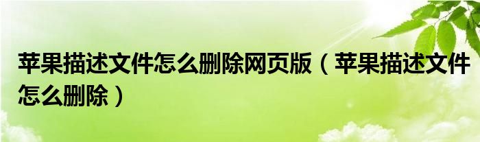 大家好,小晋来为大家解答以下问题,关于苹果描述文件怎么删除网页版,苹果描述文件怎么删除很多人还不知道,今天让我们一起来看看吧!