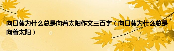 关于向日葵为什么总是向着太阳作文三百字,向日葵为什么总是向着太阳这个很多人还不知道,今天菲菲来为大家解答以上的问题,现在让我们一起来看看吧!