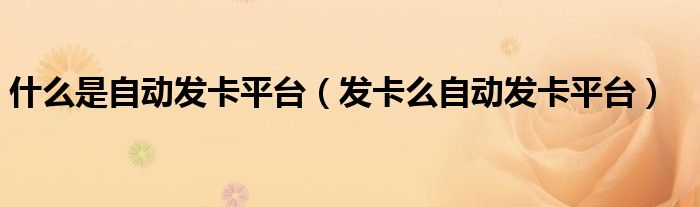 关于什么是自动发卡平台,发卡么自动发卡平台这个很多人还不知道,今天菲菲来为大家解答以上的问题,现在让我们一起来看看吧!