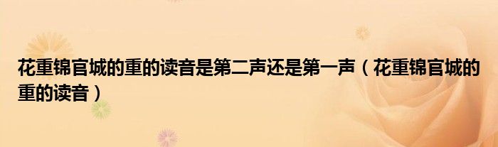关于花重锦官城的重的读音是第二声还是第一声,花重锦官城的重的读音这个很多人还不知道,今天菲菲来为大家解答以上的问题,现在让我们一起来看看吧!