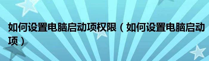 大家好,小晋来为大家解答以下问题,关于如何设置电脑启动项权限,如何设置电脑启动项很多人还不知道,今天让我们一起来看看吧!