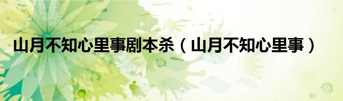 关于山月不知心里事剧本杀,山月不知心里事这个很多人还不知道,今天菲菲来为大家解答以上的问题,现在让我们一起来看看吧!
