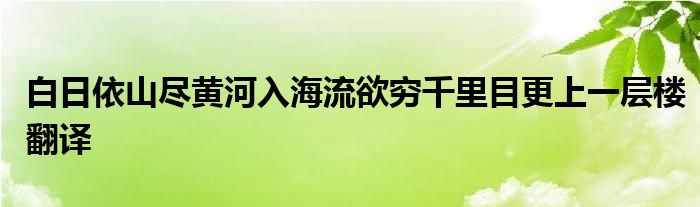 关于白日依山尽黄河入海流欲穷千里目更上一层楼翻译这个很多人还不知道,今天菲菲来为大家解答以上的问题,现在让我们一起来看看吧!