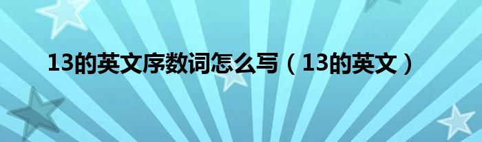 关于13的英文序数词怎么写,13的英文这个很多人还不知道,今天菲菲来为大家解答以上的问题,现在让我们一起来看看吧!