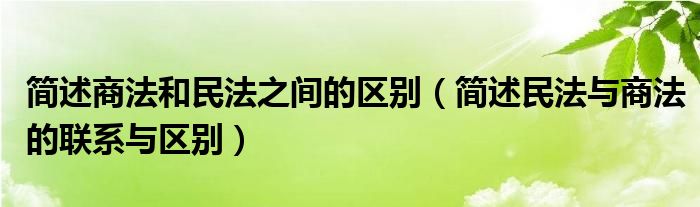 关于简述商法和民法之间的区别,简述民法与商法的联系与区别这个很多人还不知道,今天菲菲来为大家解答以上的问题,现在让我们一起来看看吧!