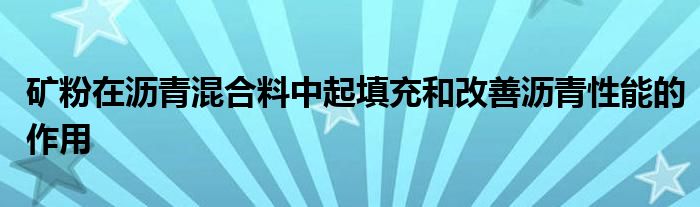 关于矿粉在沥青混合料中起填充和改善沥青性能的作用这个很多人还不知道,今天菲菲来为大家解答以上的问题,现在让我们一起来看看吧!