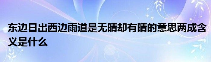 关于东边日出西边雨道是无晴却有晴的意思两成含义是什么这个很多人还不知道,今天菲菲来为大家解答以上的问题,现在让我们一起来看看吧!