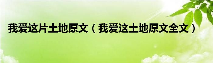 关于我爱这片土地原文,我爱这土地原文全文这个很多人还不知道,今天菲菲来为大家解答以上的问题,现在让我们一起来看看吧!