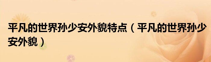 关于平凡的世界孙少安外貌特点,平凡的世界孙少安外貌这个很多人还不知道,今天菲菲来为大家解答以上的问题,现在让我们一起来看看吧!