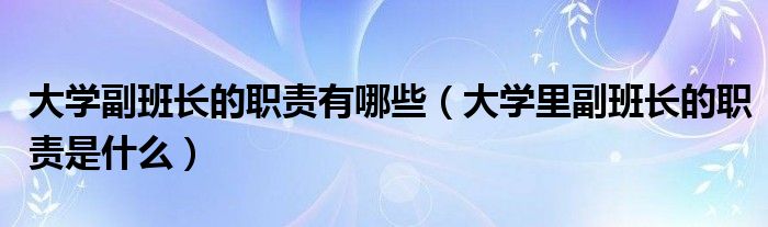 关于大学副班长的职责有哪些,大学里副班长的职责是什么这个很多人还不知道,今天菲菲来为大家解答以上的问题,现在让我们一起来看看吧!
