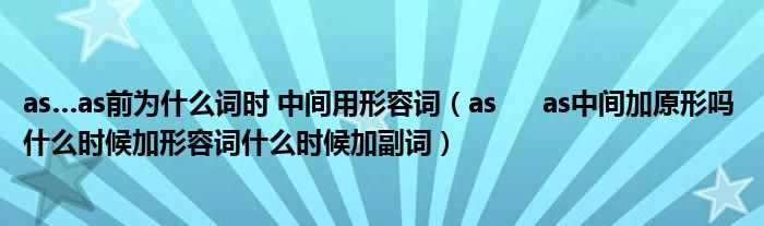 关于as…as前为什么词时 中间用形容词,as as中间加原形吗 什么时候加形容词什么时候加副词这个很多人还不知道,今天菲菲来为大家解答以上的问题,现在让我们一起来看看吧!