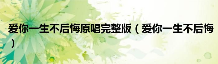 爱你一生不后悔原唱完整版,爱你一生不后悔很多人还不知道,乐乐来为大家解答以上问题,现在让我们一起来看看吧!