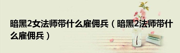 暗黑2女法师带什么雇佣兵(暗黑2法师带什么雇佣兵)
