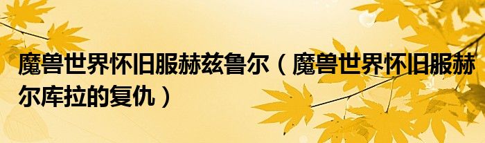 魔兽世界怀旧服赫兹鲁尔(魔兽世界怀旧服赫尔库拉的复仇)