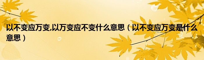 关于以不变应万变,以万变应不变什么意思,以不变应万变是什么意思这个很多人还不知道,今天菲菲来为大家解答以上的问题,现在让我们一起来看看吧!