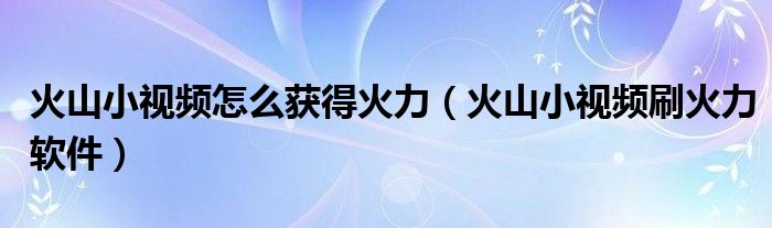 大家好,小晋来为大家解答以下问题,关于火山小视频怎么获得火力,火山小视频刷火力软件很多人还不知道,今天让我们一起来看看吧!