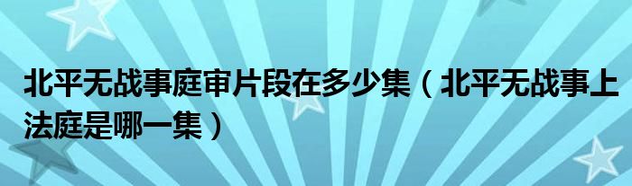 大家好,小晋来为大家解答以下问题,关于北平无战事庭审片段在多少集,北平无战事上法庭是哪一集很多人还不知道,今天让我们一起来看看吧!