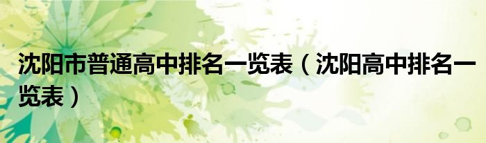 关于沈阳市普通高中排名一览表,沈阳高中排名一览表这个很多人还不知道,今天菲菲来为大家解答以上的问题,现在让我们一起来看看吧!
