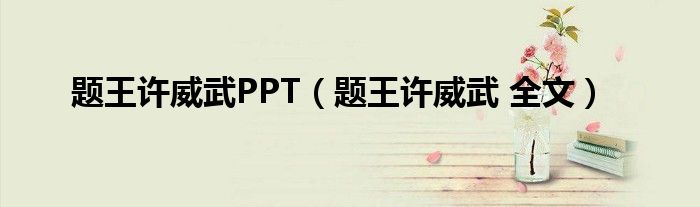 题王许威武PPT(题王许威武 全文)
