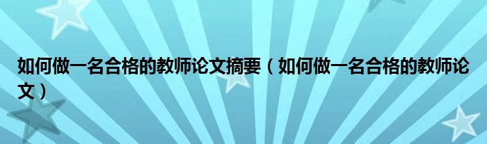 关于如何做一名合格的教师论文摘要,如何做一名合格的教师论文这个很多人还不知道,今天菲菲来为大家解答以上的问题,现在让我们一起来看看吧!