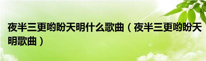 关于夜半三更哟盼天明什么歌曲,夜半三更哟盼天明歌曲这个很多人还不知道,今天菲菲来为大家解答以上的问题,现在让我们一起来看看吧!