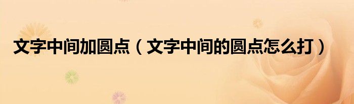 关于文字中间加圆点,文字中间的圆点怎么打这个很多人还不知道,今天菲菲来为大家解答以上的问题,现在让我们一起来看看吧!