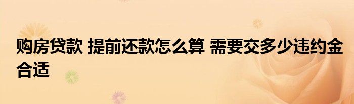 关于购房贷款 提前还款怎么算 需要交多少违约金合适这个很多人还不知道,今天菲菲来为大家解答以上的问题,现在让我们一起来看看吧!