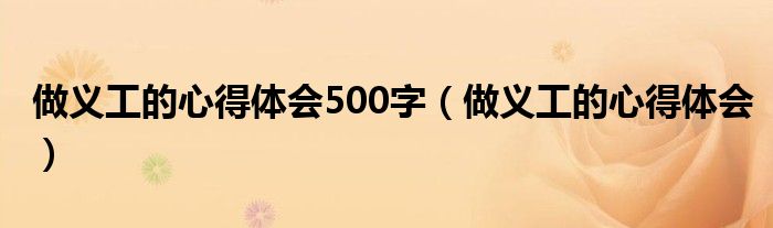 关于做义工的心得体会500字,做义工的心得体会这个很多人还不知道,今天菲菲来为大家解答以上的问题,现在让我们一起来看看吧!