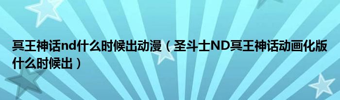 关于冥王神话nd什么时候出动漫,圣斗士ND冥王神话动画化版什么时候出这个很多人还不知道,今天菲菲来为大家解答以上的问题,现在让我们一起来看看吧!