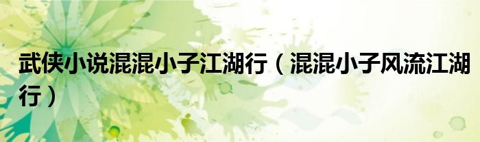 关于武侠小说混混小子江湖行,混混小子风流江湖行这个很多人还不知道,今天菲菲来为大家解答以上的问题,现在让我们一起来看看吧!