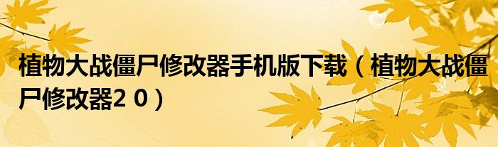 关于植物大战僵尸修改器手机版下载,植物大战僵尸修改器2 0这个很多人还不知道,今天菲菲来为大家解答以上的问题,现在让我们一起来看看吧!