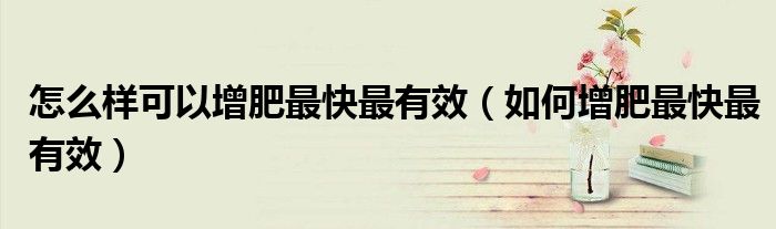 关于怎么样可以增肥最快最有效,如何增肥最快最有效这个很多人还不知道,今天菲菲来为大家解答以上的问题,现在让我们一起来看看吧!