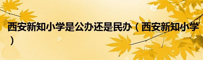 关于西安新知小学是公办还是民办,西安新知小学这个很多人还不知道,今天菲菲来为大家解答以上的问题,现在让我们一起来看看吧!