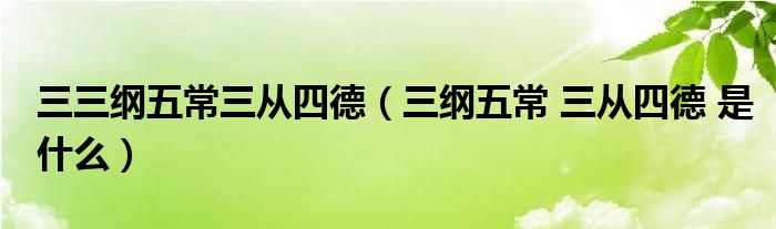 关于三三纲五常三从四德,三纲五常 三从四德 是什么这个很多人还不知道,今天菲菲来为大家解答以上的问题,现在让我们一起来看看吧!
