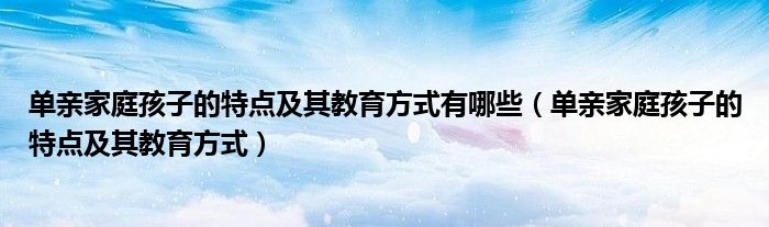 关于单亲家庭孩子的特点及其教育方式有哪些,单亲家庭孩子的特点及其教育方式这个很多人还不知道,今天菲菲来为大家解答以上的问题,现在让我们一起来看看吧!