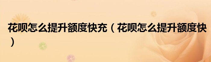 花呗怎么提升额度快充(花呗怎么提升额度快)