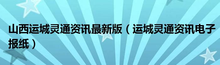 山西运城灵通资讯最新版(运城灵通资讯电子报纸)
