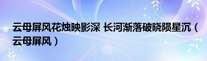 关于云母屏风花烛映影深 长河渐落破晓陨星沉,云母屏风这个很多人还不知道,今天菲菲来为大家解答以上的问题,现在让我们一起来看看吧!