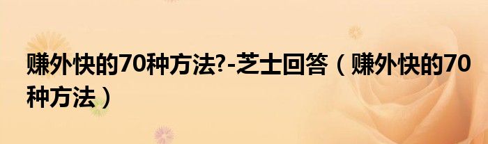 关于赚外快的70种方法?-芝士回答,赚外快的70种方法这个很多人还不知道,今天菲菲来为大家解答以上的问题,现在让我们一起来看看吧!