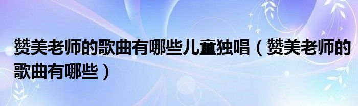 关于赞美老师的歌曲有哪些儿童独唱,赞美老师的歌曲有哪些这个很多人还不知道,今天菲菲来为大家解答以上的问题,现在让我们一起来看看吧!